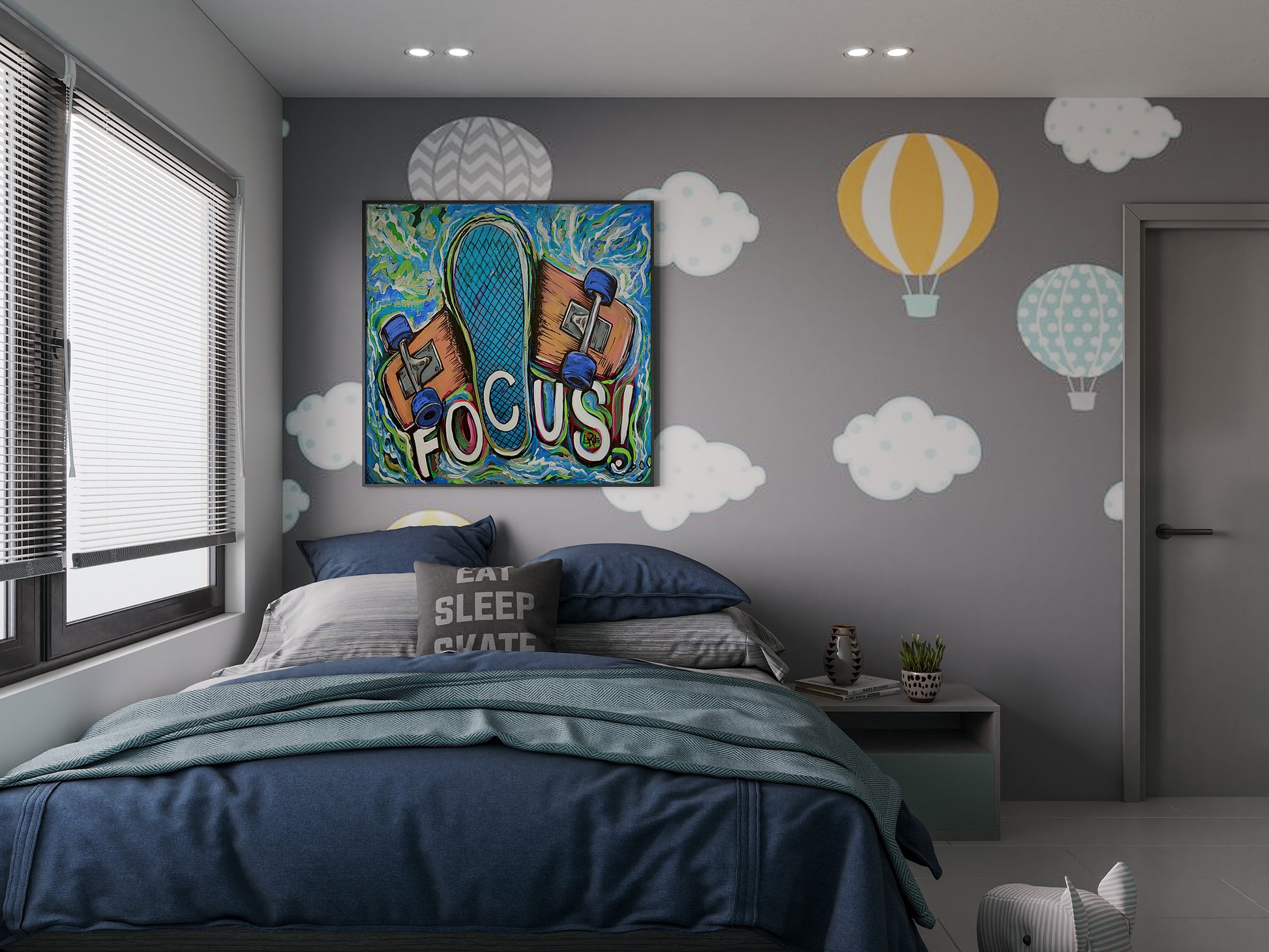 Acrylic painting based on Jay Adams who is one of the original members of the Zephyr Skate Team. They are legends in the skate world and personal sports heroes of mine. Other key members are Tony Alva and Stacey Peralta. 20 x 24 x 1.5 in. (50.8 x 60.96 x 3.81 cm)